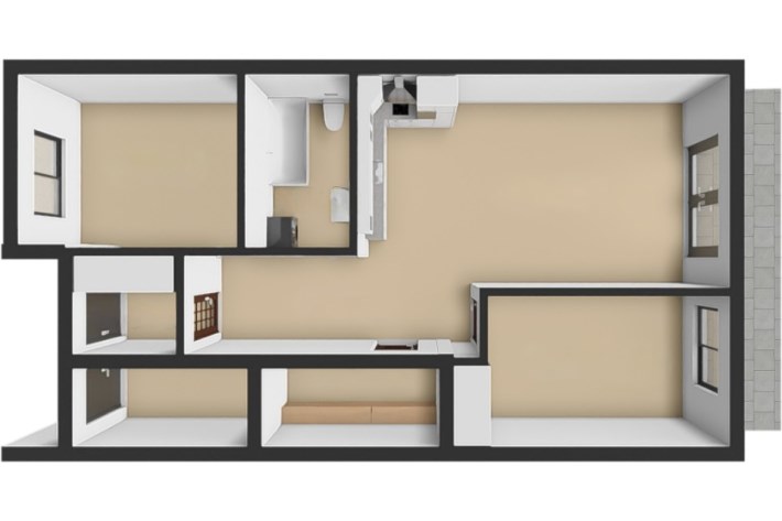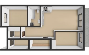 - Dwie sypialnie:  idealne dla domowników, pokoju dziecięcego, gabinetu