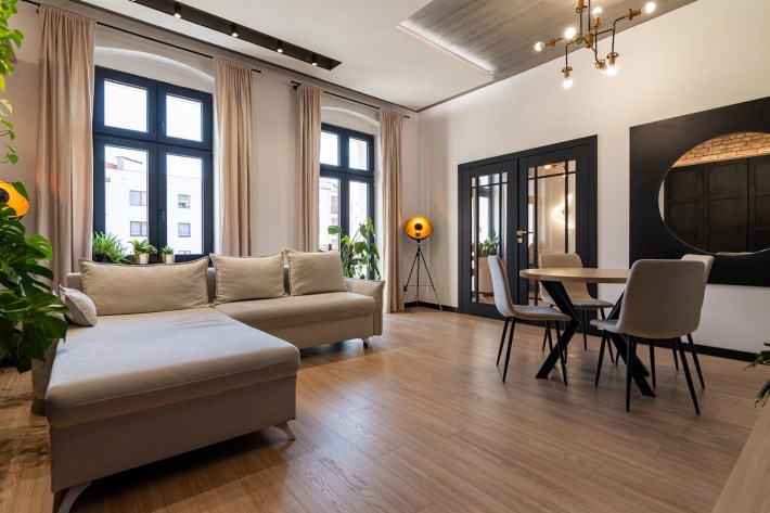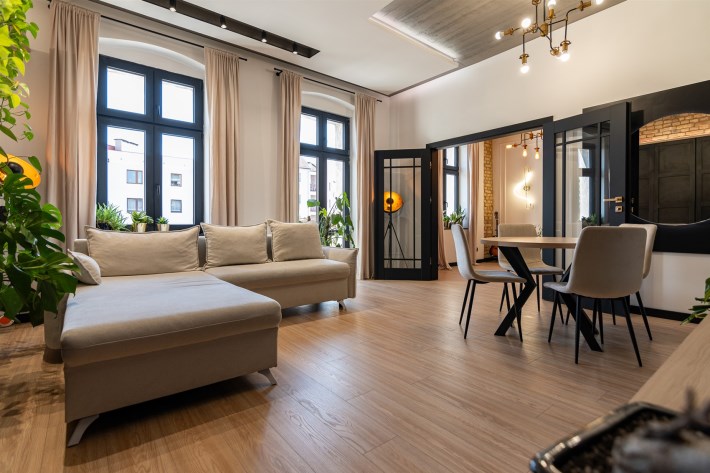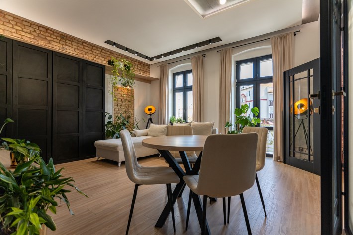 Nowoczesne wnętrze z nowinkami technologicznymi w klimatycznej kamienicy. Mieszkanie znajduje się na II piętrze odrestaurowanej kamienicy w centrum miasta (ok. 100m od MC Donalda). Lokal przeszedł generalny remont w zakres którego wchodziło m.in.: