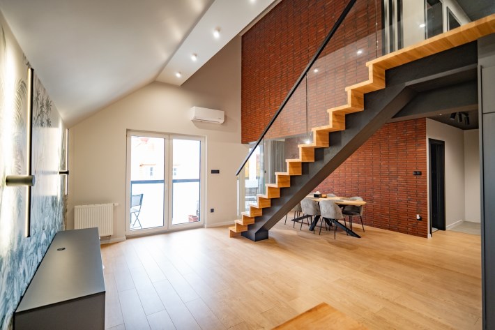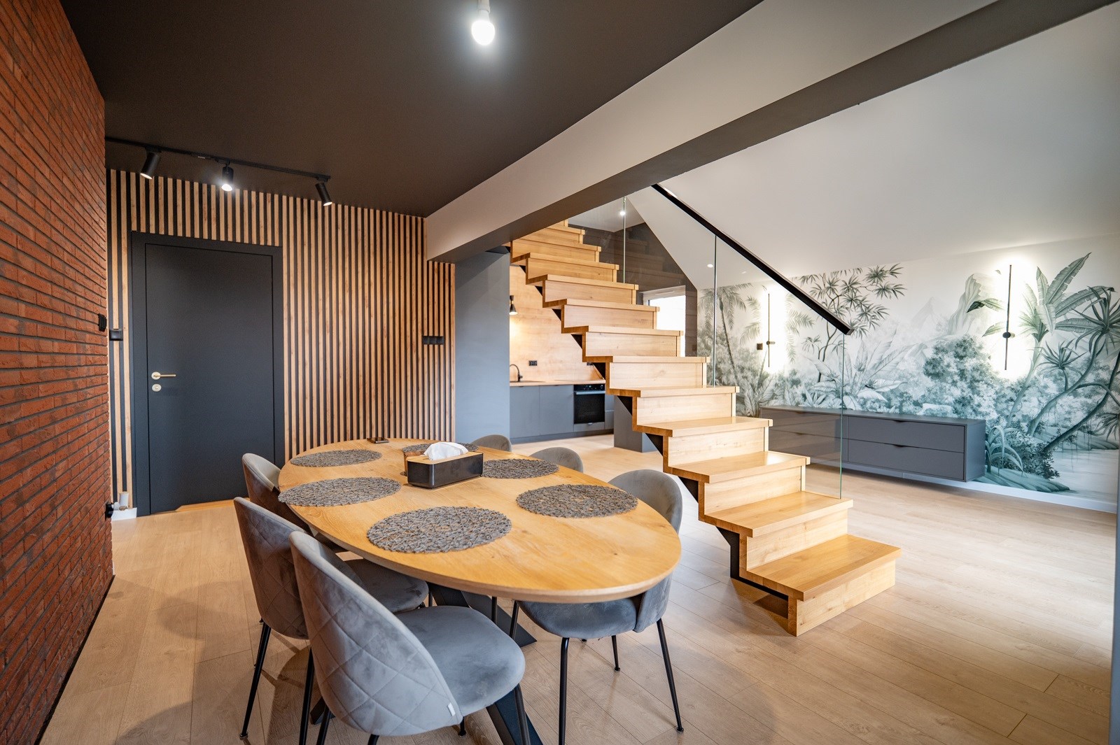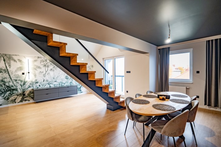 To mieszkanie to świetna alternatywa dla domu – łączy w sobie zalety dużej przestrzeni, nowoczesnej architektury i wygody mieszkania w mieście.