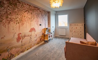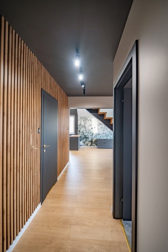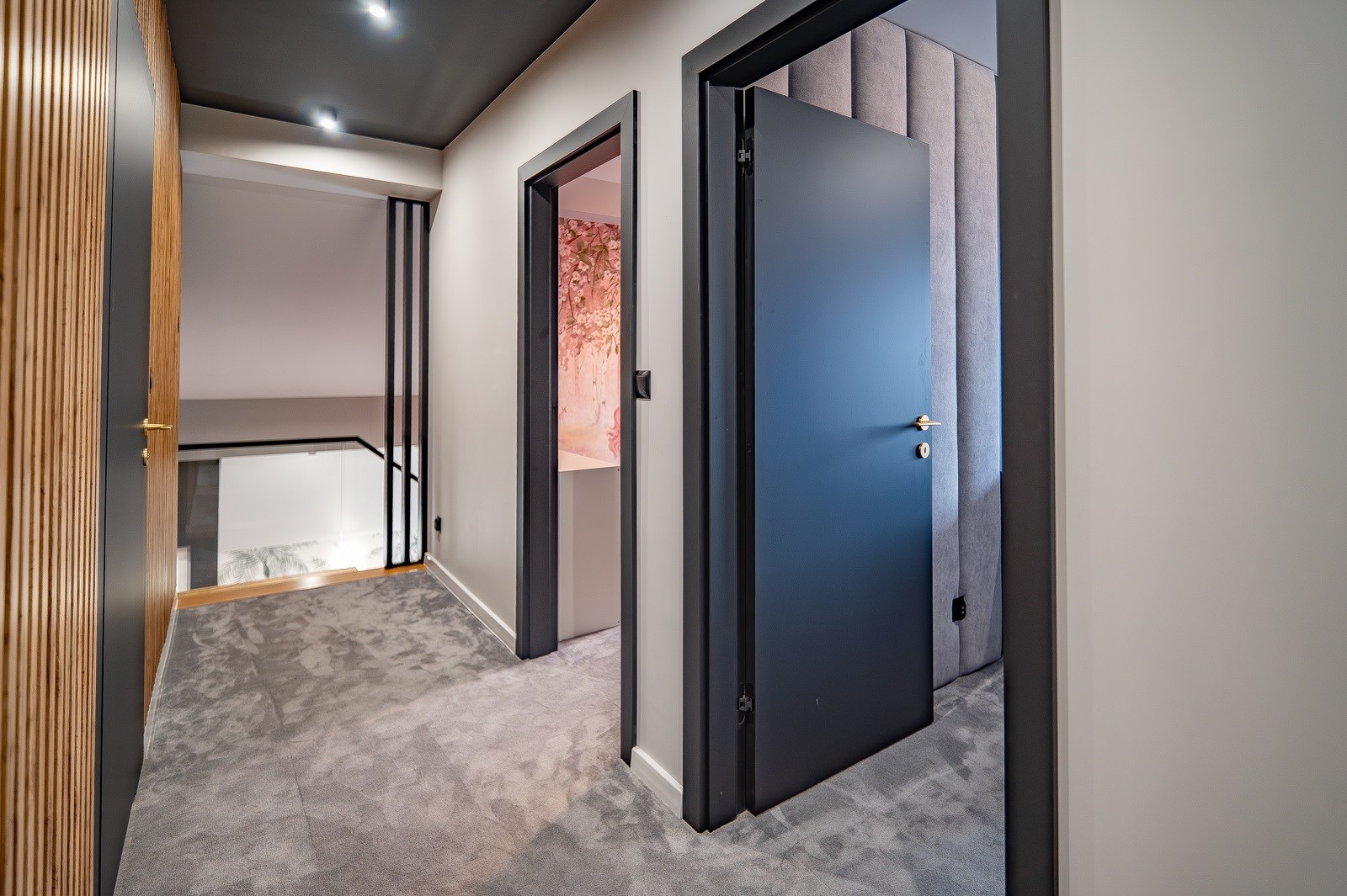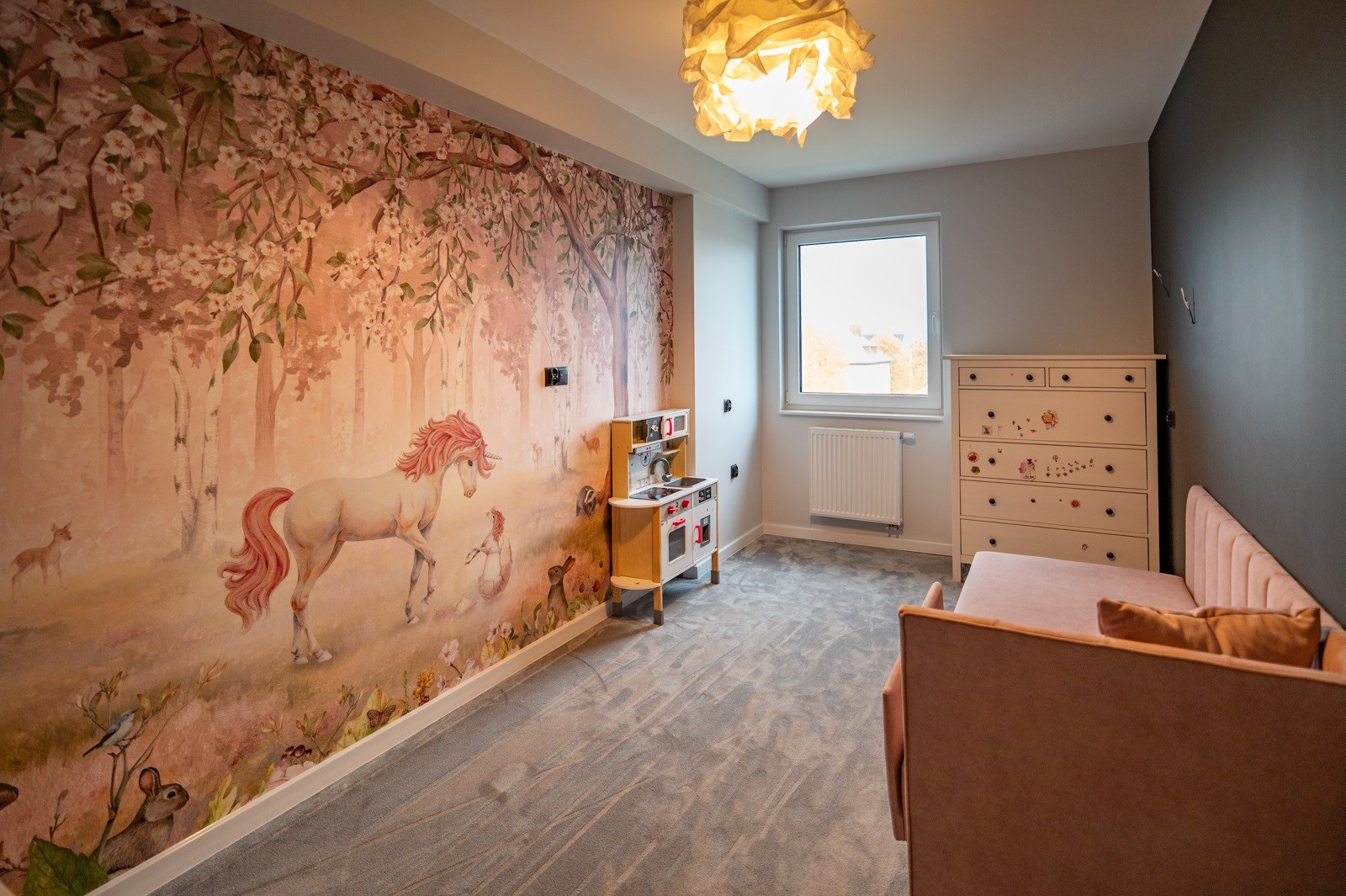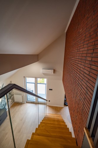 • Antresola, na której znajdują się dwa dodatkowe pokoje oraz druga łazienka – doskonała przestrzeń dla dorastających dzieci