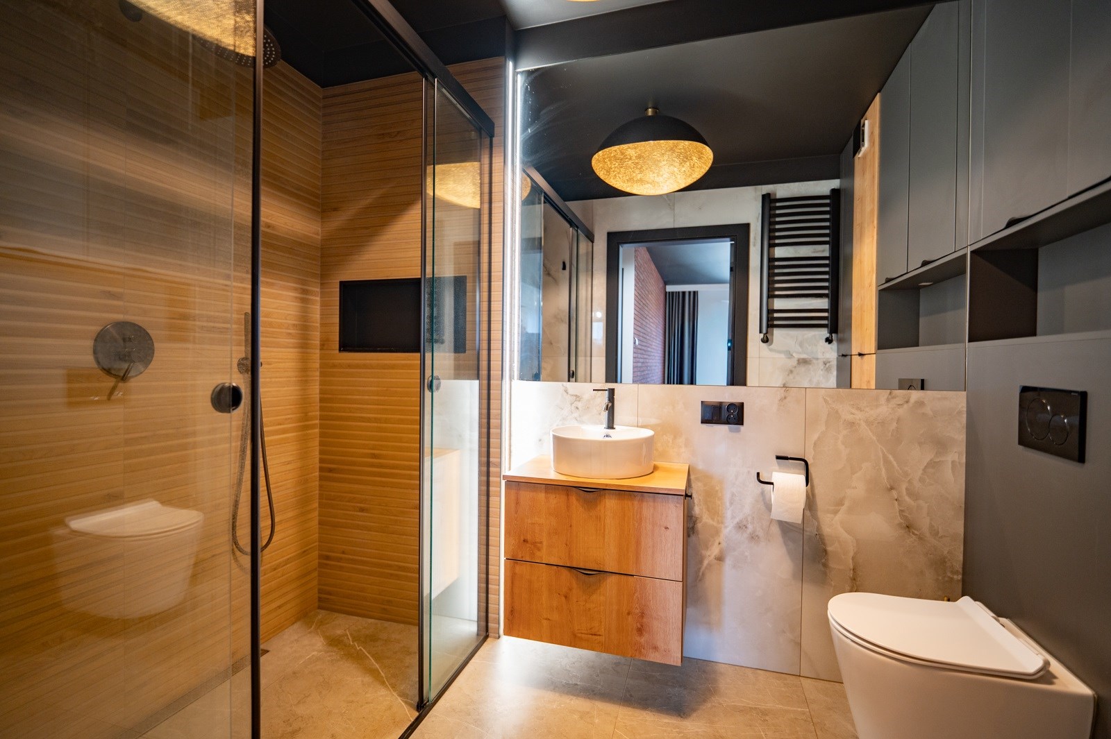 • Nowoczesna łazienka z pełnym wyposażeniem.