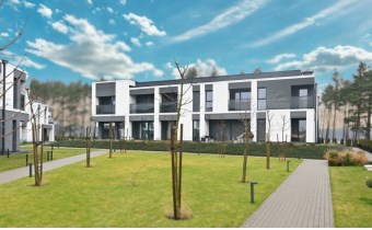 Kompleks składa się z 5 niskich budynków, każdy o zaledwie dwóch kondygnacjach mieszkalnych (parter + piętro). Taka forma zabudowy zapewnia prywatność, ciszę i komfort codziennego życia – bez anonimowości dużych osiedli.