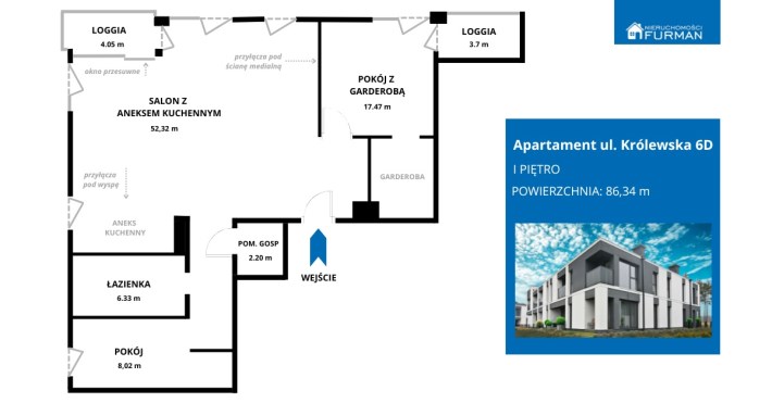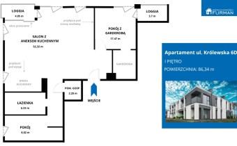 W ofercie sprzedaży wyjątkowy apartament o powierzchni ponad 86 m², zlokalizowany w prestiżowej inwestycji „Królewska” w Piła – jednej z najbardziej kameralnych i elitarnych zabudów mieszkaniowych w tej części miasta.