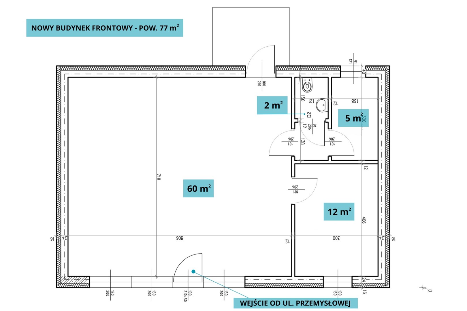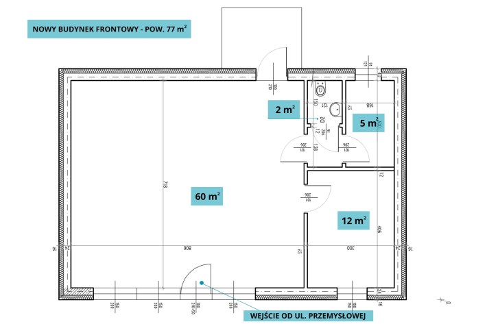 2. Nowy budynek frontowy o funkcji usługowo-handlowej – pow. 77 m²