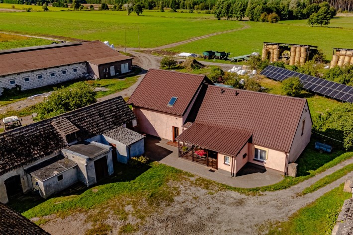 Całość uzupełnia instalacja fotowoltaiczna, która zasila gospodarstwo w energię.