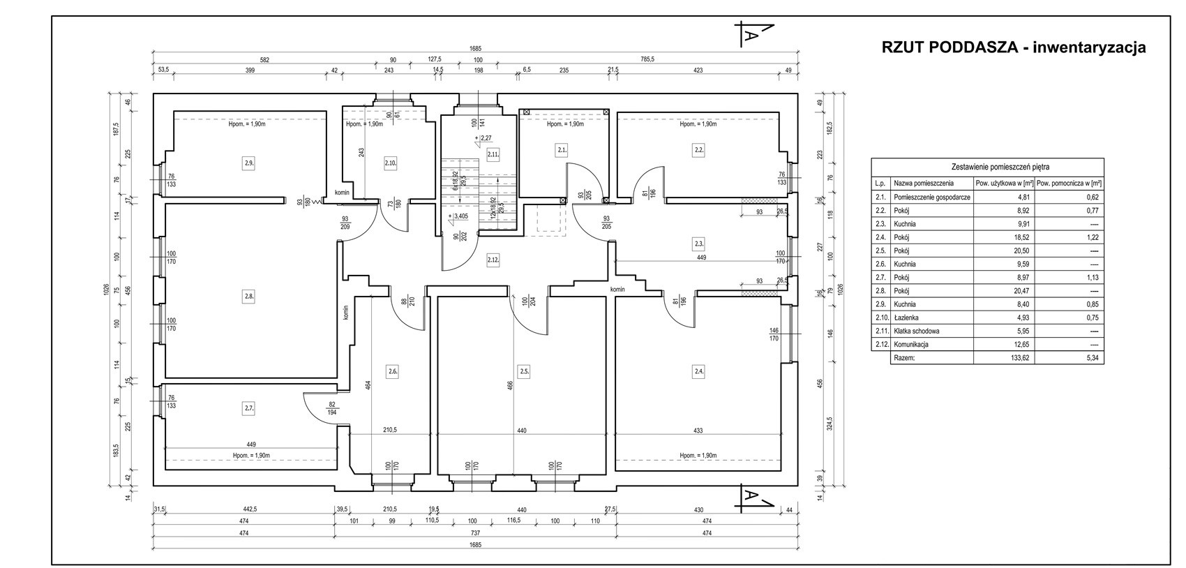 - powierzchnia mieszkalna (115,55 m2) składająca się z 5 pokoi, 3 kuchni, łazienki